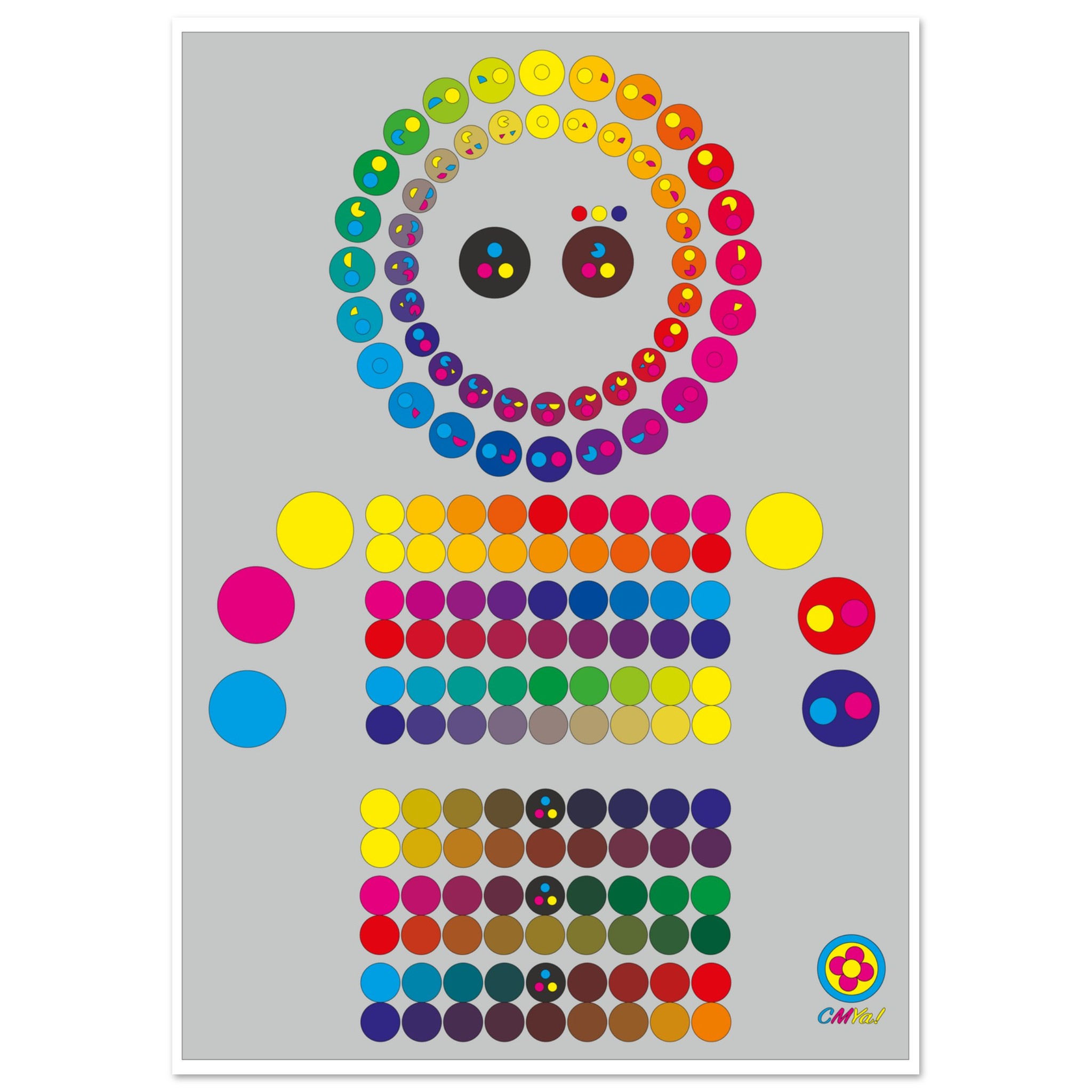 This friendly and clear way to demonstrate the difference between working with a set of cyan, magenta, and yellow compared to red, yellow, and blue, is perfect for any age.